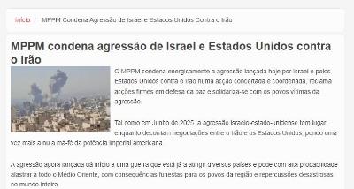 MPPM condena agressão de Israel e Estados Unidos contra o Irão