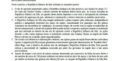 Declaração do Ministério dos Negócios Estrangeiros sobre a agressão militar do regime sionista contra o Irão